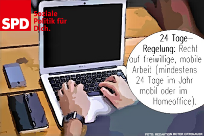 Recht auf freiwillige, mobile Arbeit (mindestens 24 Tage im Jahr mobil oder im Homeoffice.