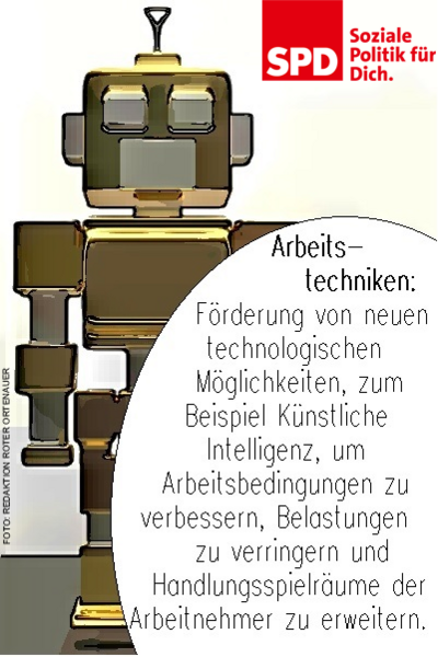 Förderung von neuen technologischen Möglichkeiten, zum beisiel Künstliche Intelligenz, um Arbeitsbedingungen zu verbessern, Belastungen zu verringern und Handlungsspielräume der Arbeitnehmer zu erweitern.