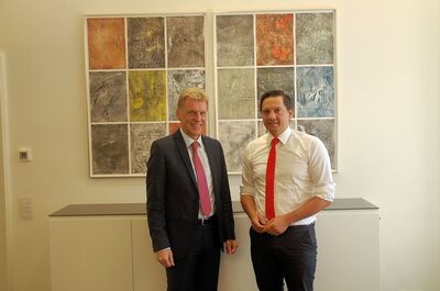 Singler berichtete Fechner, das die Entwicklung des Neubaugebiets "Alte Ziegelei" mit einer innovativen Wärme- und Stromversorgung an ein bi-direktionales Kalt-Wärme-Netz vorangehe. „Ich bin überzeugt von dieser sauberen Lösung, es braucht dort keine fossilen Brennstoffe mehr“, so Singler.