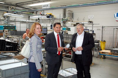 Johannes Fechner besuchte den Lahrer Standort der Grohe AG. Werksleiter Hans-Martin Souchon und Pressesprecherin Dr. Ulrike Heuser-Greipl präsentierten Fechner zunächst die aktuellen Umsatz- und Kennzahlen des Traditionsunternehmens, welches seit 2014 zum japanischen LIXIL-Konzern gehört.