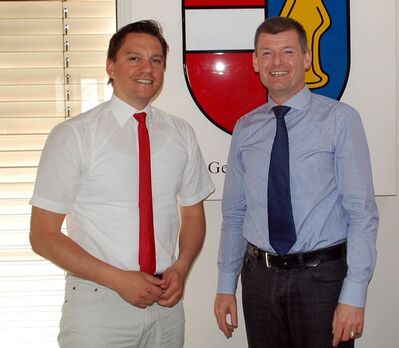 SPD-Bundestagsabgeordnete Johannes Fechner informierte sich zu aktuellen Reutemer Themen bei Bürgermeister Michael Schlegel. Schlegel berichtete, dass die Entwicklung von Reute derzeit ein sehr schwieriges Unterfangen sei, da viele Flächen wegen der neuen Bestimmungen zum Hochwasserschutz extrem aufwändig nur dann einer Bebauung zugeführt werden könnten, wenn entsprechende Retentionsflächen geschaffen werden.